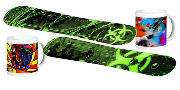 Das Sublimationsverfahren wird in den unterschiedlichsten Bereichen eingesetzt,so z.B. bei der Herstellung von Skis, Skateboards, Fahnen etc... Bei der industriellen Fertigung wird seit vielen Jahren das Sublimationsverfahren verwendet, bisher überwiegend im Sieb- oder Offsetdruck-Verfahren. Dank der Entwicklung von Sublimationstinten ist es nun möglich, Einzelstücke oder auch Großauflagen kostengünstig und in überragender Qualität schnell und ohne Vorkosten anzufertigen. |